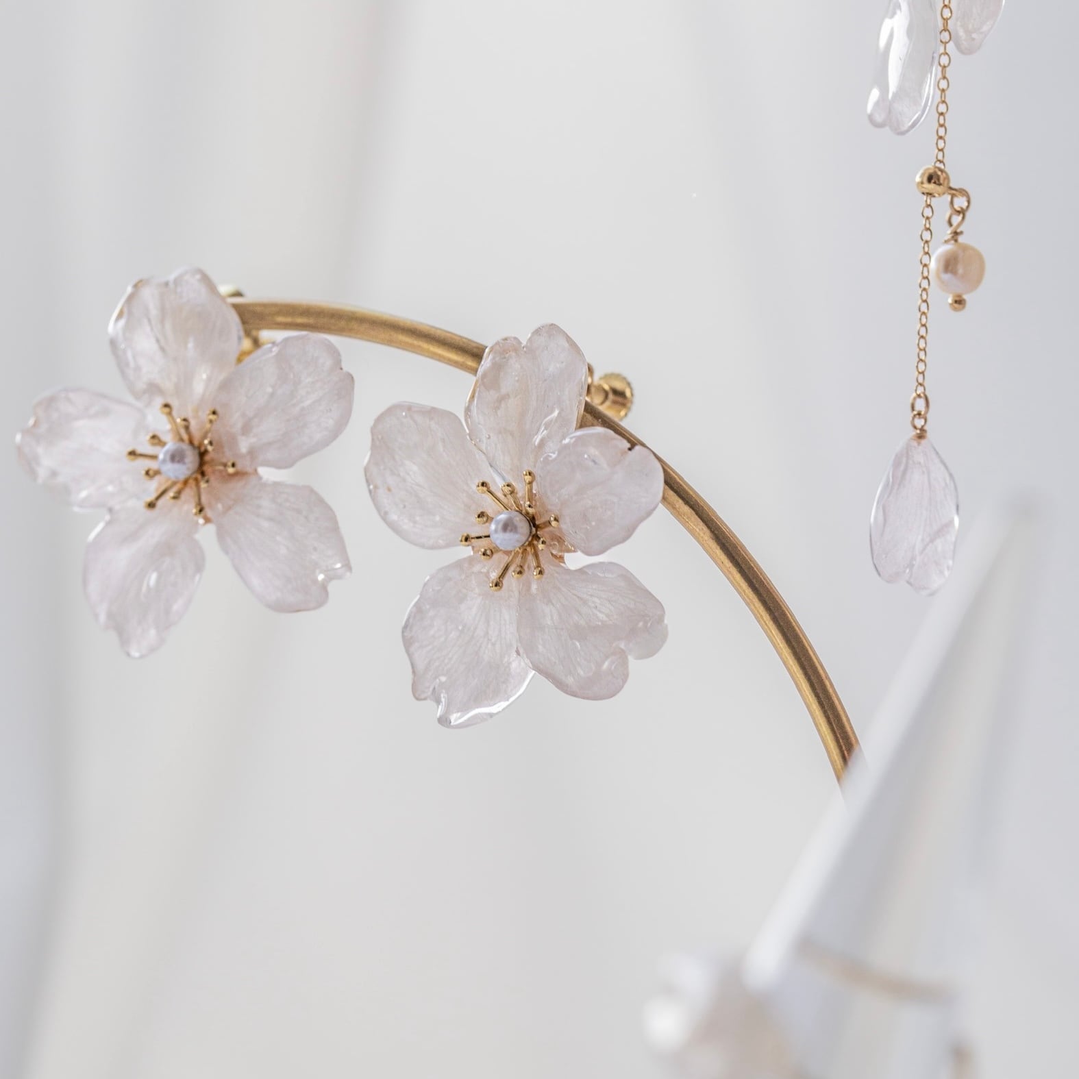 18枚目、19枚目のお写真のように(今年の桜の形やコーティングは11枚目を参考にしてください)、両耳を桜にしていただくことが可能です。オプションより追加してください。また、その場合はお写真11枚目のように花びら2枚もついてくるので、①花びら、②桜一輪③桜一輪 の、合計3点をお届けいたします