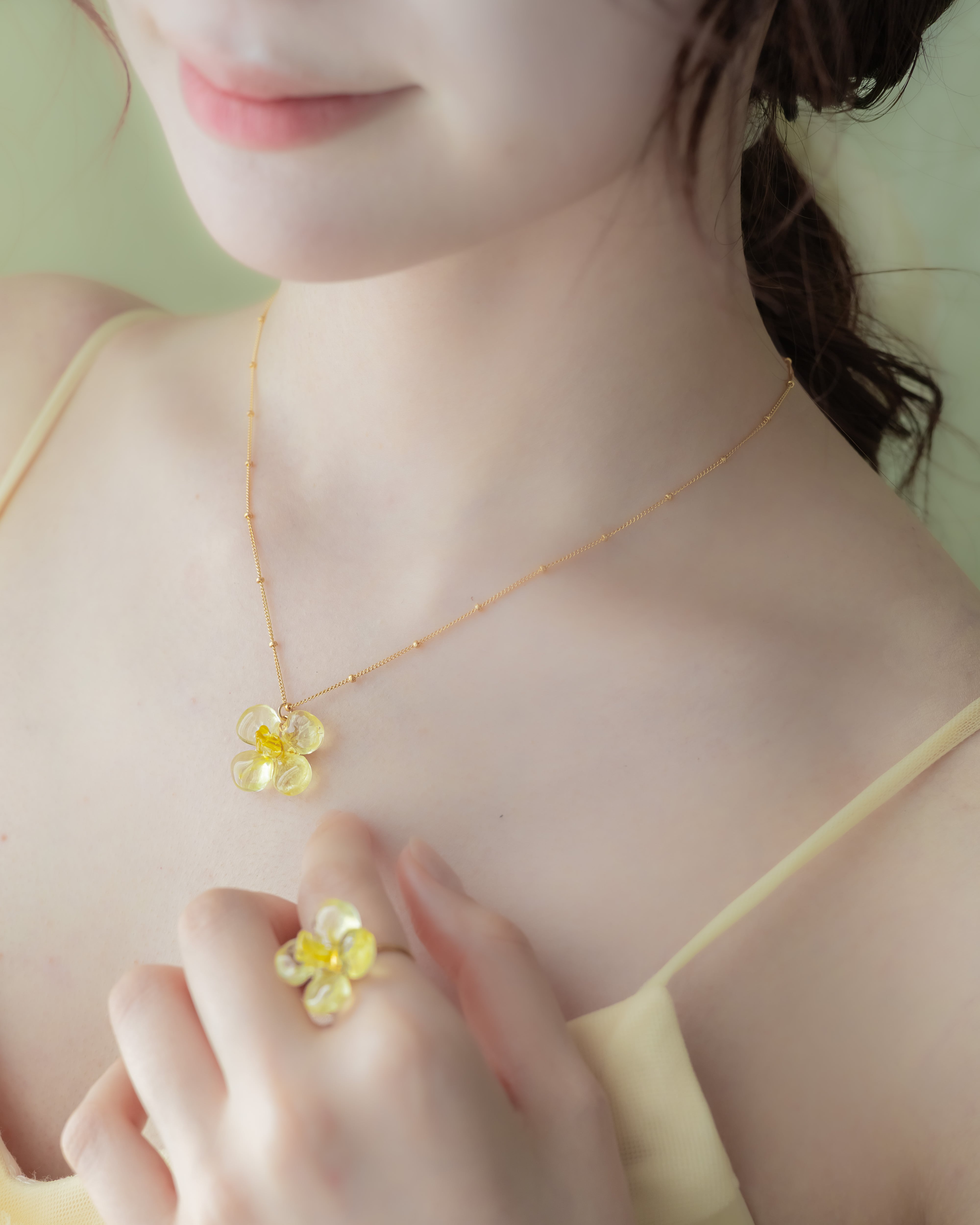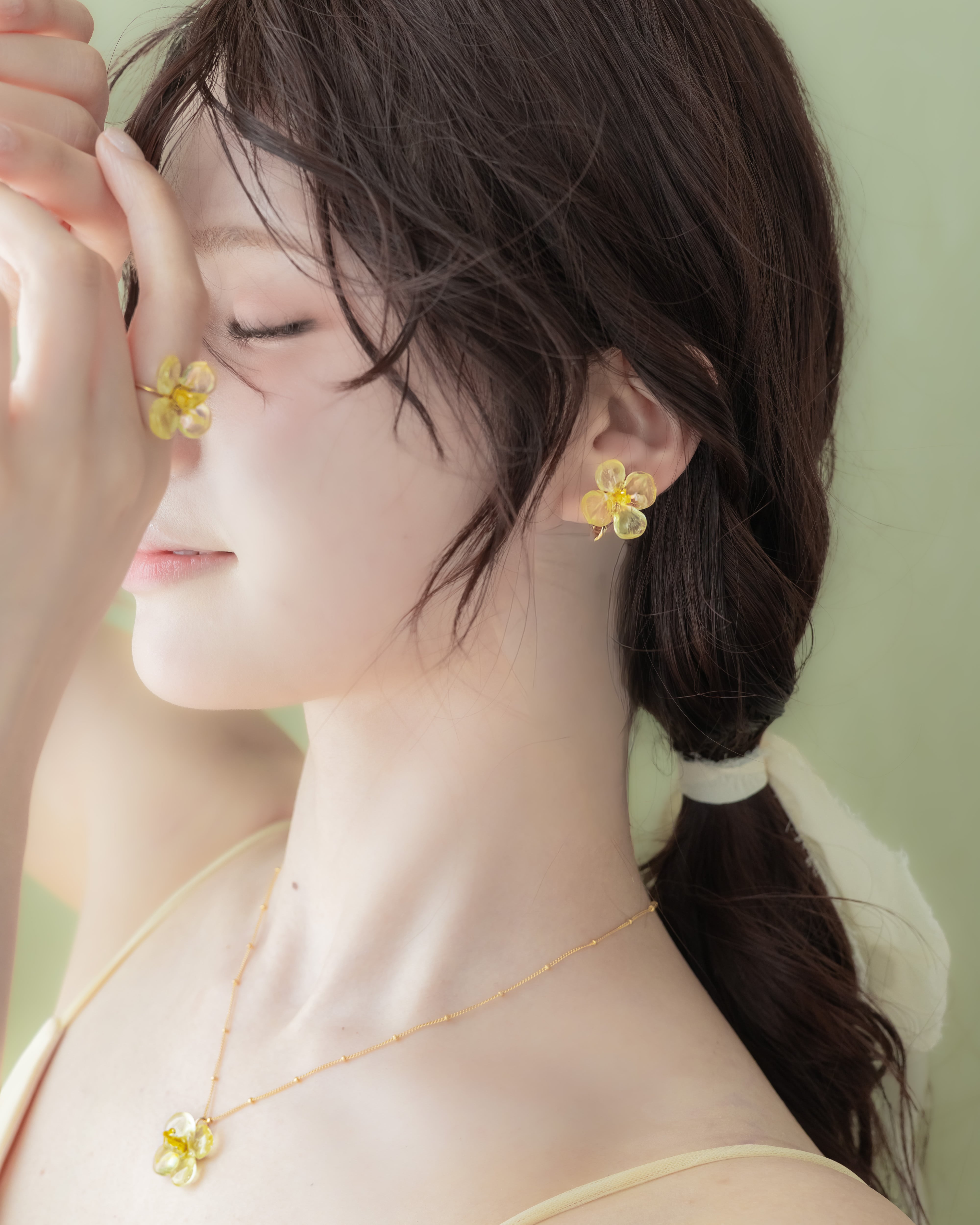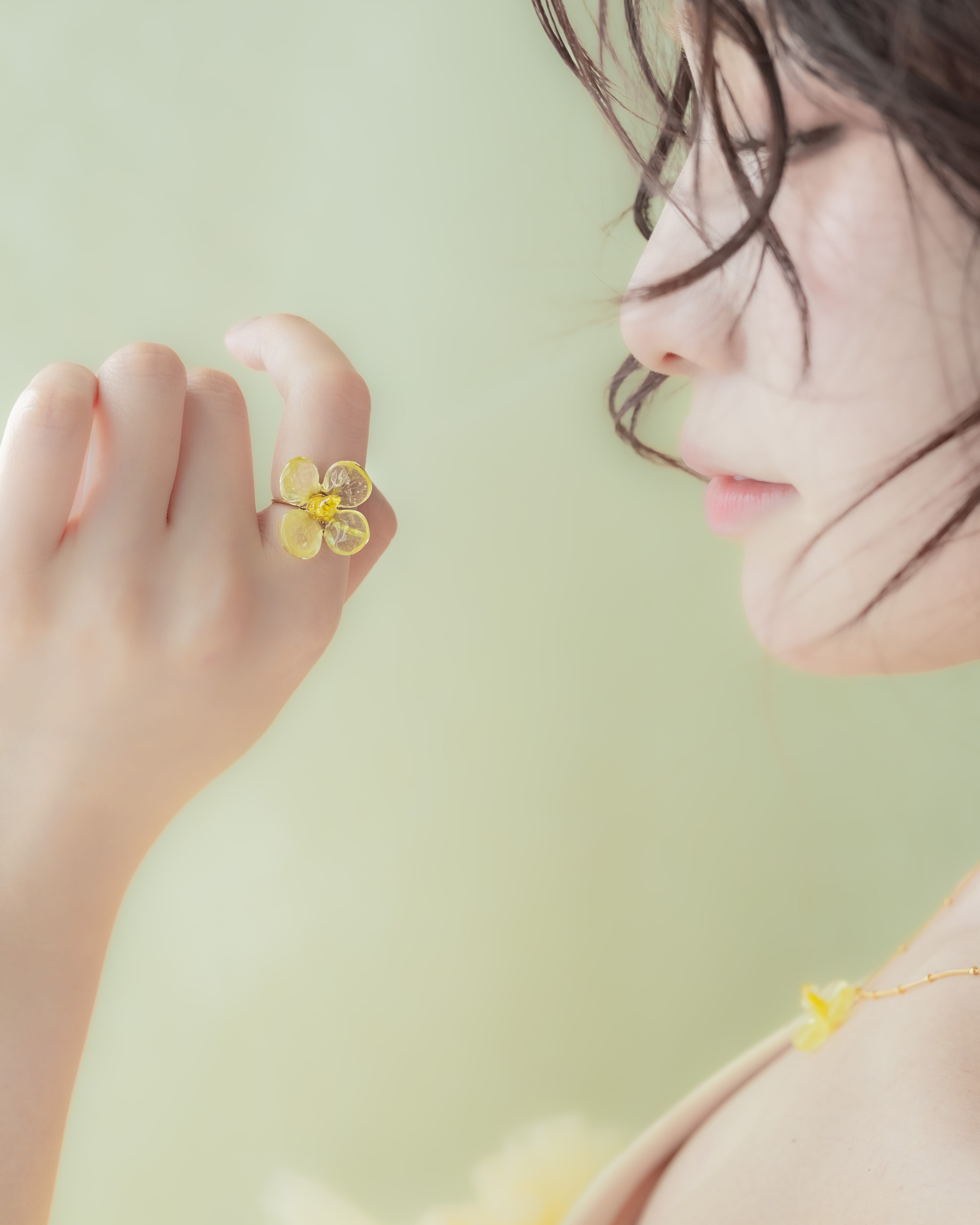 2025年に開花した菜の花をアクセサリーにするために脱色、着色、調色…